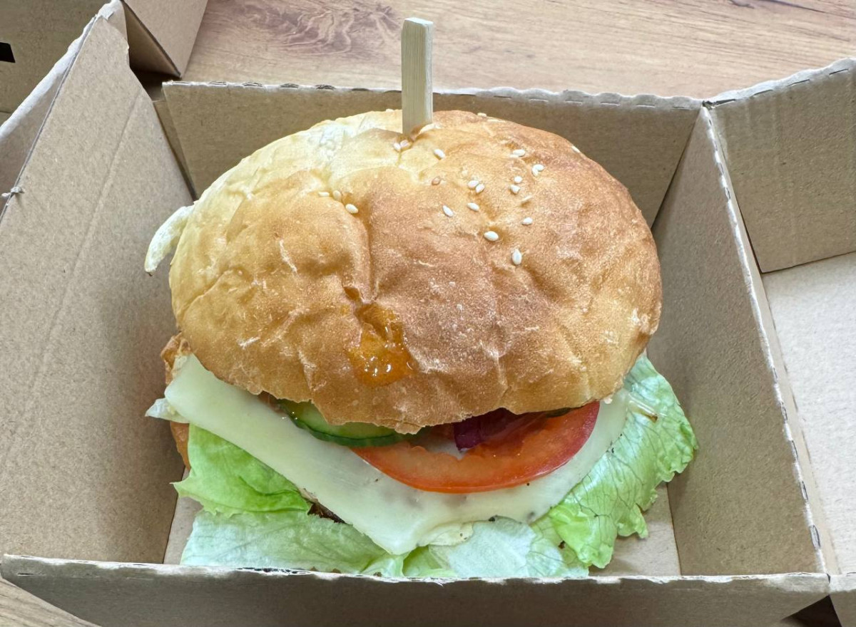 Hamburger zsemle, Hamburgerhús, Jégsaláta, Ketchup, Lilahagyma, Mustár, Paradicsom, Trappista sajt, Uborka