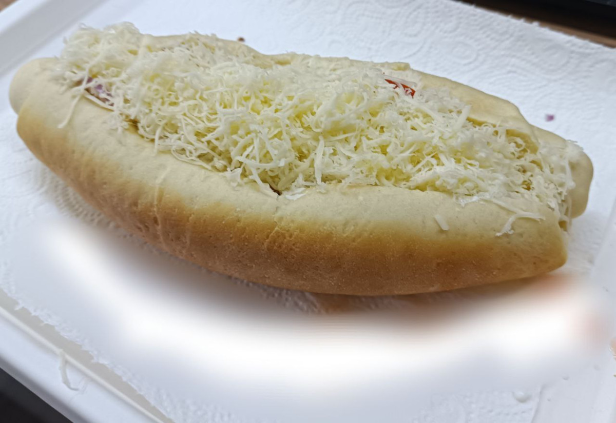 Gyros hús, Gyros kifli, Lilahagyma, Paradicsom, Pirított bacon, Pirított kolbász, Tartármártás, Trappista sajt, Uborka